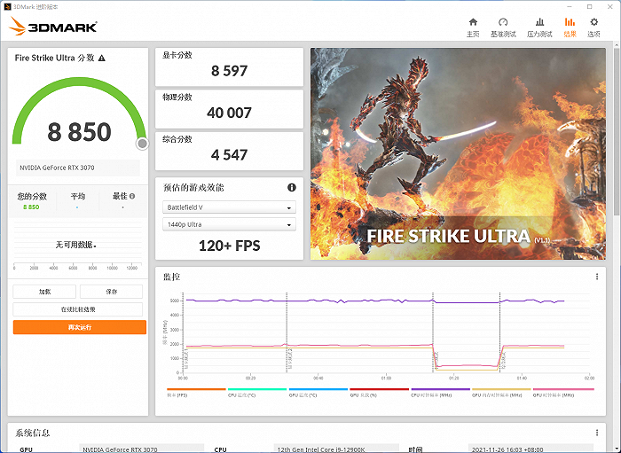 显卡:Nvidia Geforce RTX 3070;