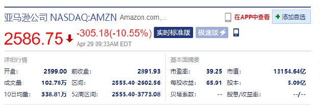 新浪科技讯 北京时间4月29日,美股三大指数集体低开,道指跌0.36%,纳指跌1.25%,标普500指数跌0.88%。亚马逊开跌超10%。