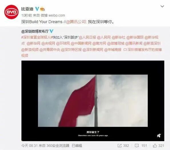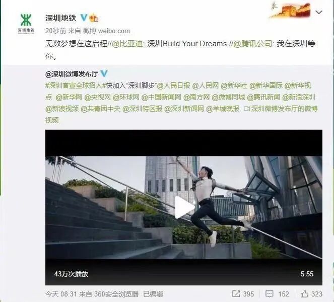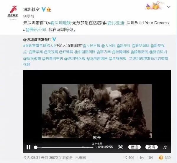 这支视频热血沸腾,振奋人心,被称为“最不官方的宣传片”。短短几个小时,全网转发,迅速刷屏深圳人的朋友圈。