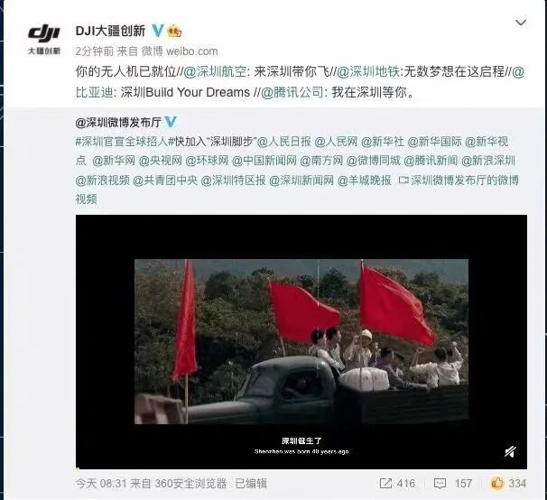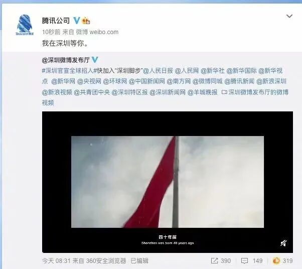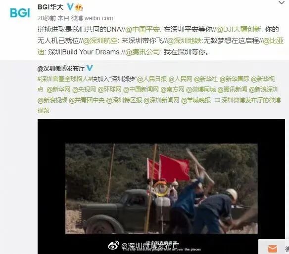1月4日下午,深圳企业纷纷出动,相继转发微博,助力深圳向全球人才发出召唤。