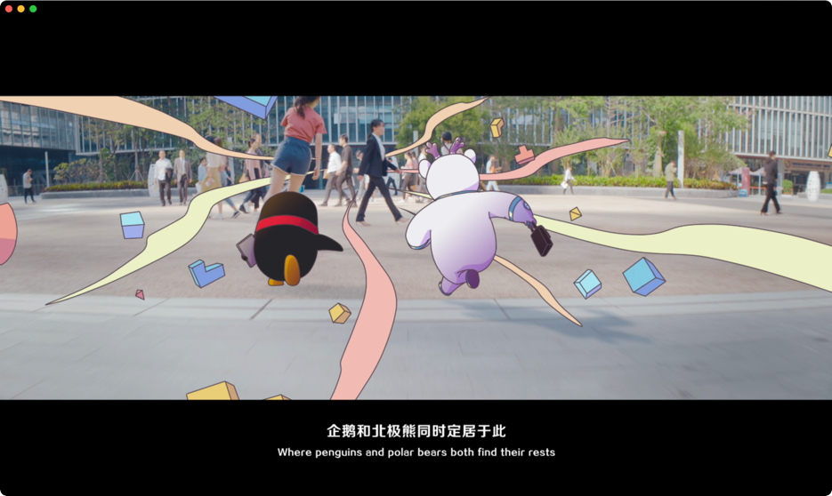 “企鹅”和“北极熊”同时在深圳北纬22°的阳光下成长,这里拥有开放包容先行的人才发展环境。企鹅为腾讯吉祥物,北极熊为华强方特(深圳)动漫吉祥物。