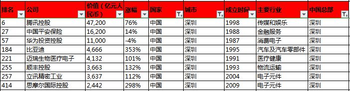 腾讯、平安保险、华为、比亚迪、迈瑞、顺丰、立讯精密、思摩尔上榜