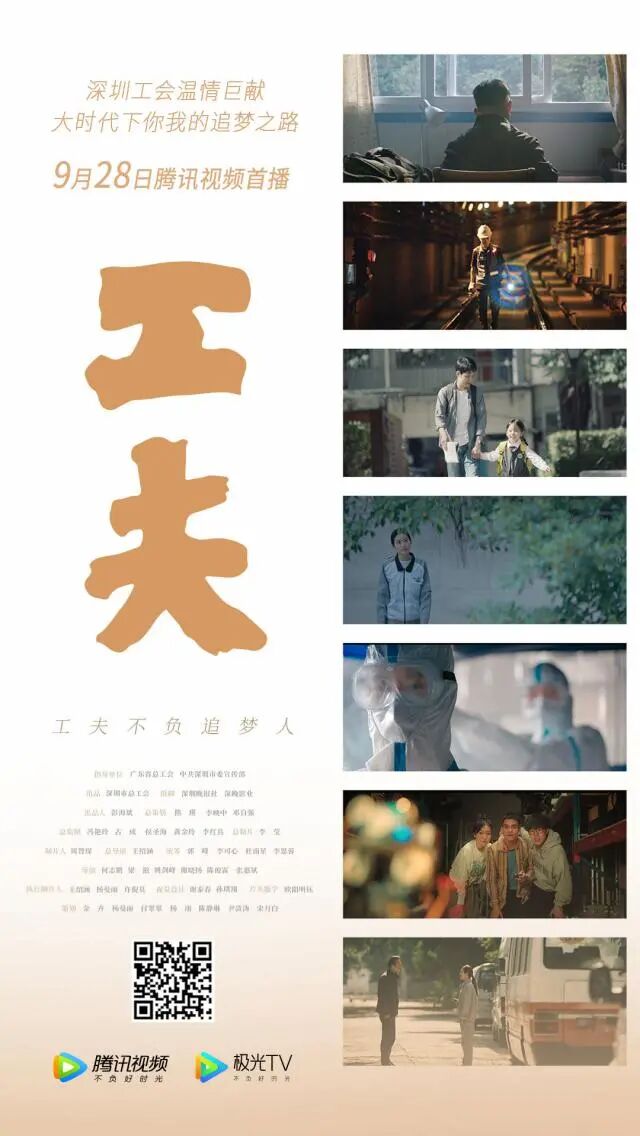 9月28日,由深圳市总工会出品的剧情长片《工夫》在腾讯视频正式上线啦!影片分为七集,用户可通过腾讯视频 APP、腾讯视频官方网站搜索关键词"工夫"观看。