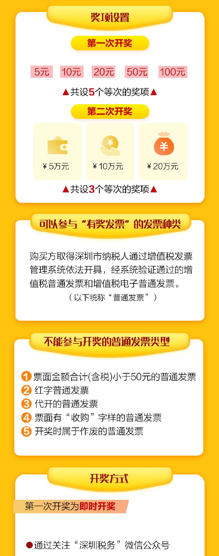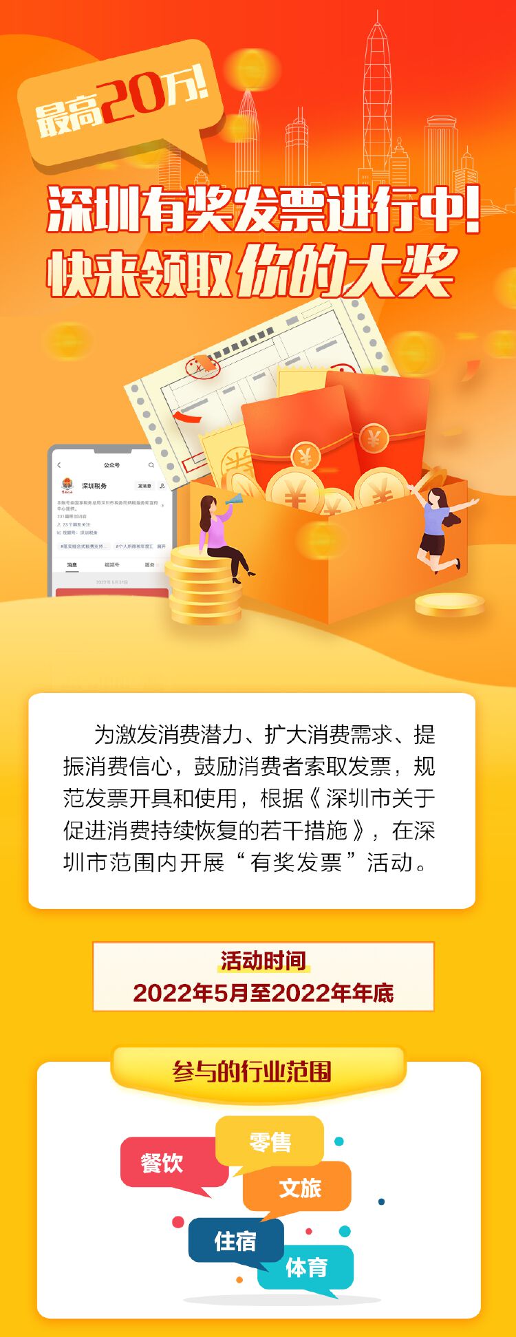 国家税务总局深圳市税务局“有奖发票”活动相关负责人称,深圳市零售、餐饮、文旅、住宿、体育等领域纳税人通过开票系统依法开具的普通发票都在活动范围内。普通发票包括经系统验证通过的增值税普通发票和增值税电子普通发票。