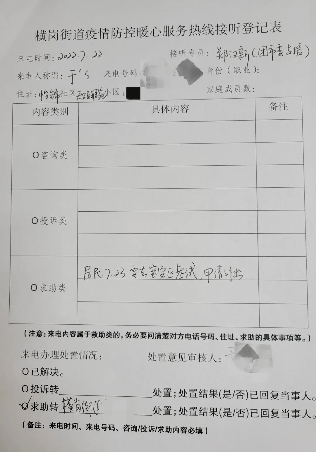 “叮铃铃,叮铃铃......”下午3点,在怡锦社区防疫服务热线值守的团市委青年突击队队员邹冯平刚拿起听筒,就听到电话那头传来十分焦急的声音,并带哭腔说:“明天一大早我要去宝安参加非常重要的考试,我已经备考一年多了!现在突然出不去了,我该怎么办?希望你们能帮帮我!”