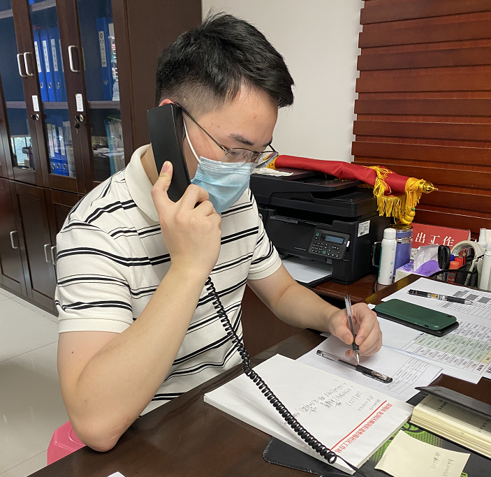 郑汉新在本次支援抗疫行动中与邹冯平一组,负责接听抗疫热线咨询任务。他说:“急民之所急,是我们每位抗疫一线人员的职责所在。”