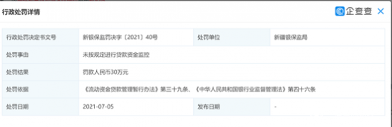 不过,乌鲁木齐分行去年还被处罚了一次,2021年7月5日,兴业银行乌鲁木齐分行因未按照规定进行贷款资金监控被新疆银保监局罚款30万元。