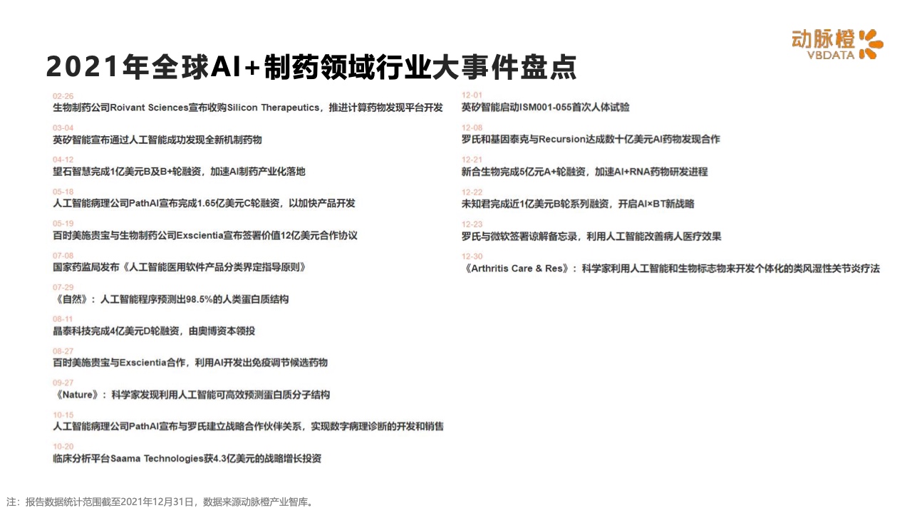 动脉橙:2016-2021年全球AI+制药价值趋势报告