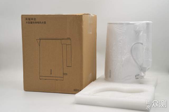 相比同类家用电器设备,施铂这款新品电热水壶的外包装并没有采用传统的白色包装盒,而是纸浆色的瓦楞纸包装,内置方形泡沫保护热水壶的上下方,还可固定热水壶在包装盒内,防止热水壶在包装盒内晃动,热水壶则采用透明塑料膜塑封、防止积尘或磨损。