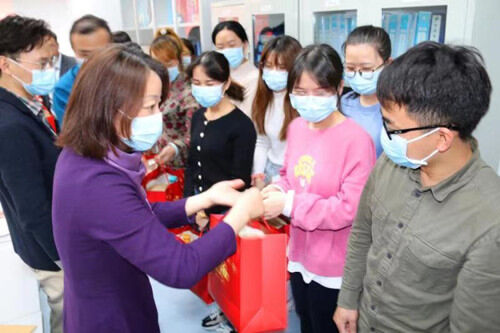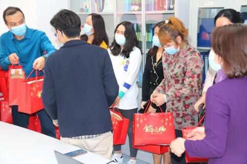 当日下午,为了给日夜奋战一线的医务人员送去关爱和温暖,倡导社会大众关注和关爱医务人员,以及营造尊医爱医的良好氛围,深圳市关爱办携手安利基金会为深圳市儿童医院检验科的医务人员开展一场以“关爱白衣天使,温暖迎新春”为主题的关爱活动,深圳市关爱办专职副主任李青松、安利公共事务部经理郭勇为儿童医院检验科的一线医务人员送上100份温暖礼包和新春祝福,这份特殊的温暖礼物包含了由安利基金会的员工志愿者精心准备的剪纸贴花台灯和安利爱心礼包。