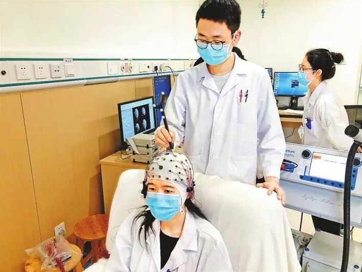 市人民医院神经内科主任郭毅告诉记者,科室开展这项技术研究,始于“三名工程”项目。科室引入美国斯坦福大学Robert Malenka院士脑病团队,对经颅磁治疗进行共同研究,以改善老年痴呆人群的认知功能水平从而提高他们的生活质量。