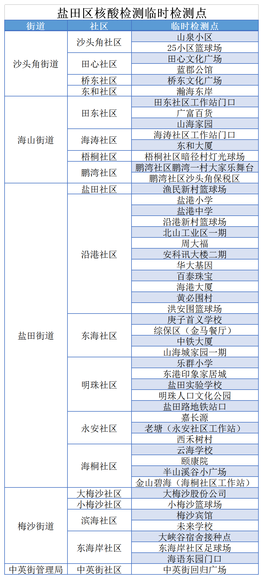 深圳市盐田区关于开展全区全员第三轮核酸检测工作的通告