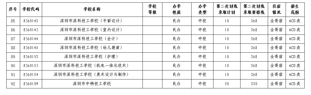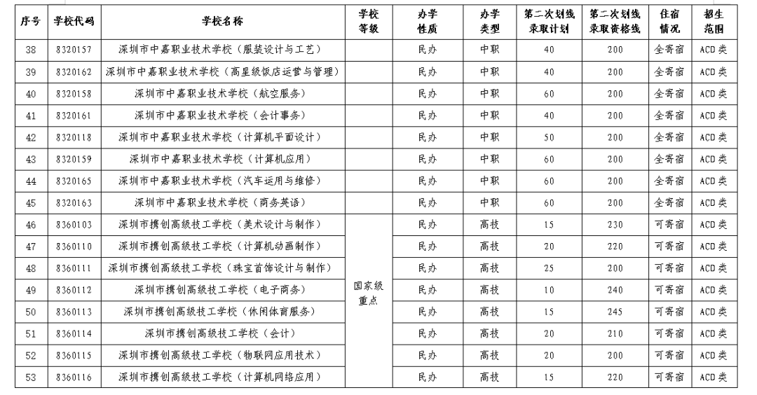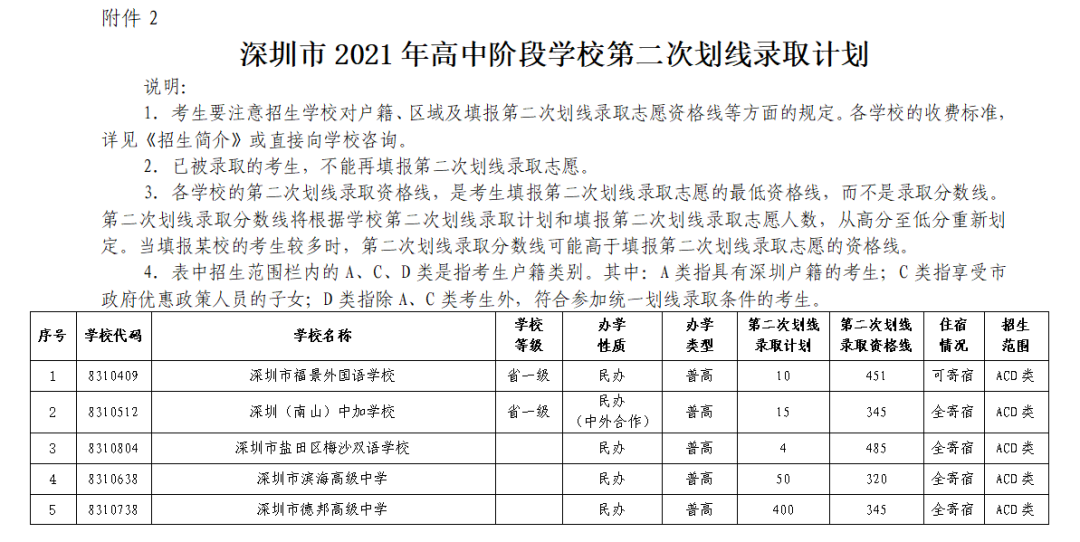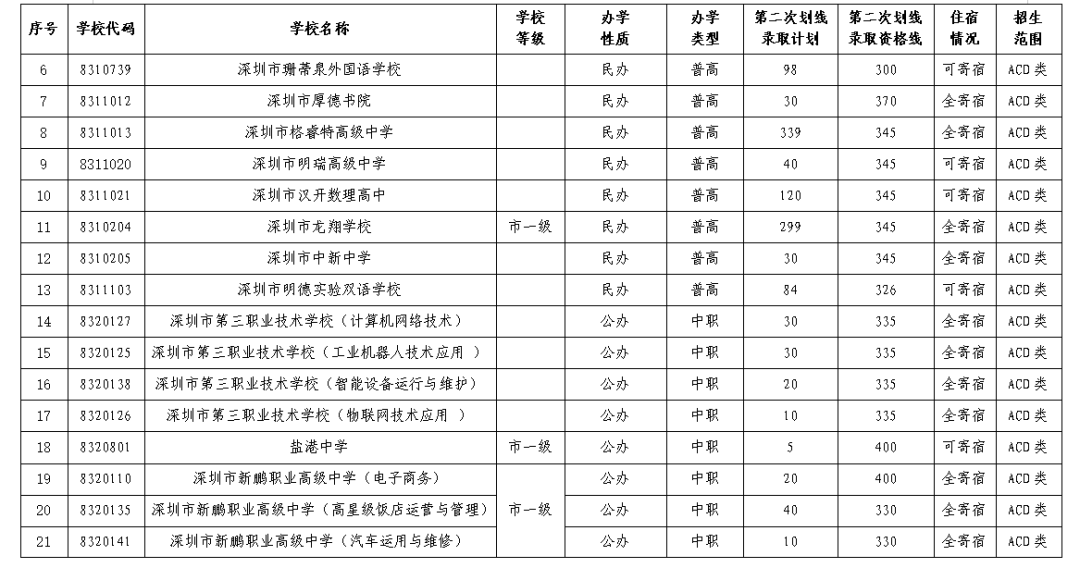 2021年深圳市高中阶段学校第二次划线录取计划公布