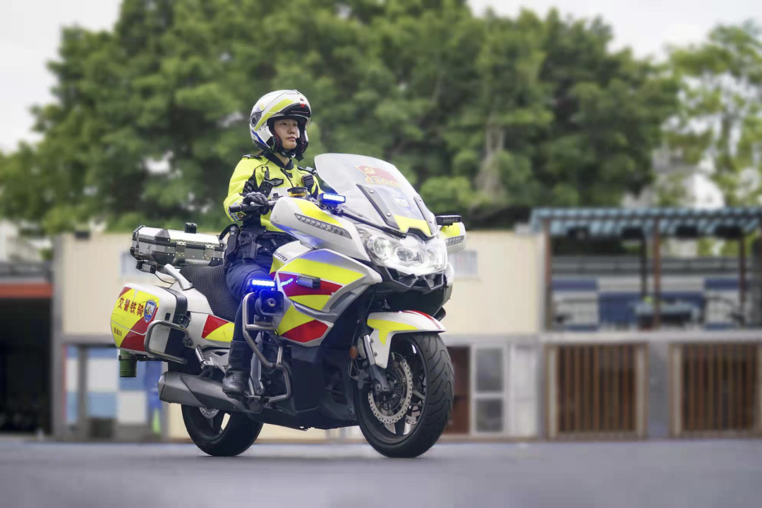 10月3日上午,刚从大梅沙高速巡逻归来的时春霞熟练地脱下头盔、手套,汗水沿着她红彤彤的脸颊流下。那一刻,她笑靥如花,和身后的车水马龙一同构成大梅沙高速路上一道亮丽的风景。