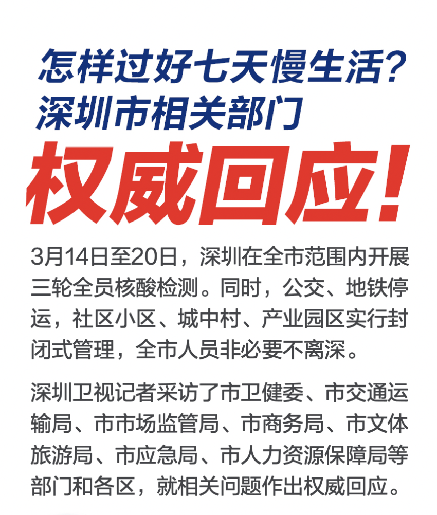 怎么过好七天慢生活?深圳多部门权威回应!