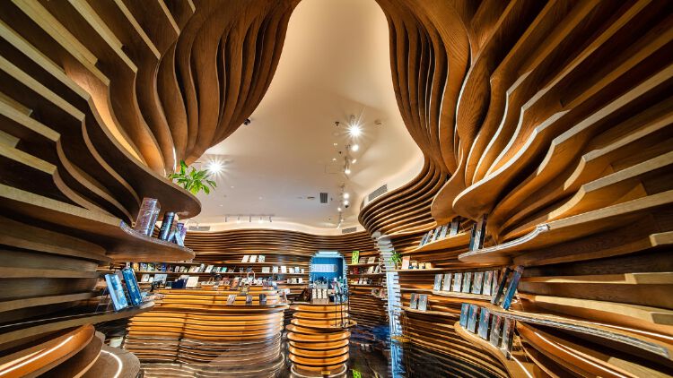 读特客户端·深圳新闻网2022年4月17日讯(深圳商报记者 吴素红 李丹 实习生 林永润)行云流水般的木质波浪书架,全球仅剩一套的绝版图书,琳琅满目的艺术类书籍,造型文艺的平衡灯,绘有京剧脸谱的陶瓷杯……4月16日,深圳滨海艺术中心迎来深圳首家剧场书店——“有戏OnShow”(艺文书店)。
