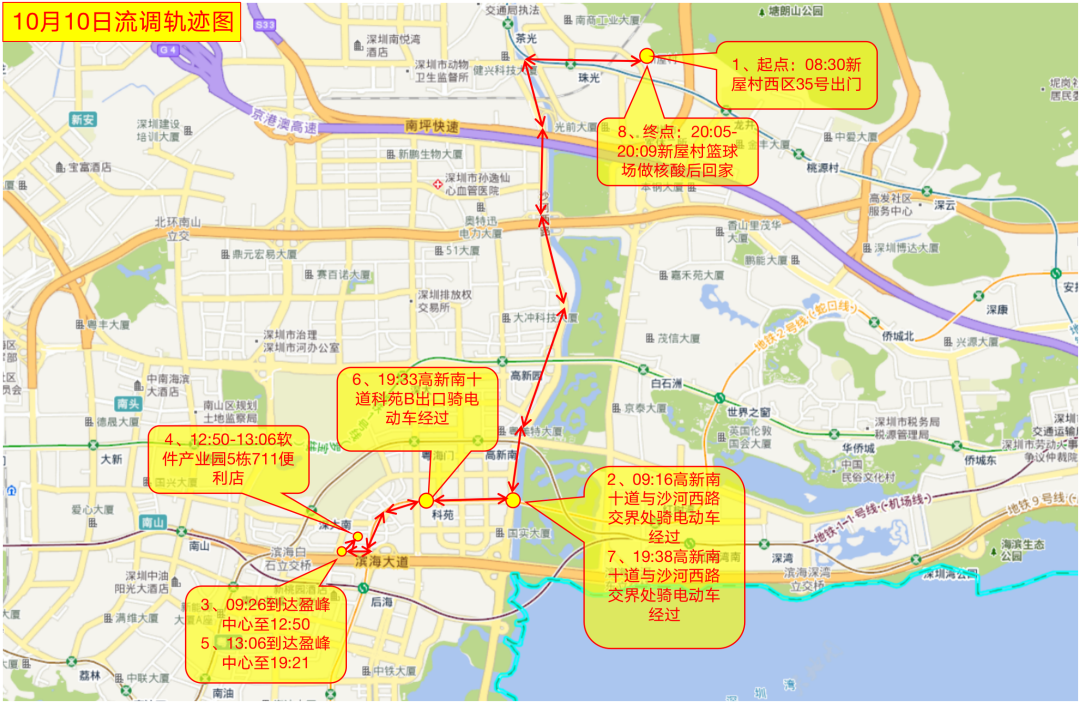 1.中国石油海滨加油站,地址:深圳市南山区滨海大道辅路深圳湾体育中心北门,时间:10月9日13:50-14:29