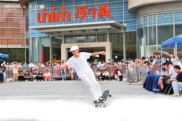 ▲3月13日,滑板玩家“菜玩板了鸟”在广东佛山环宇城参加长板女神节活动。 受访者供图