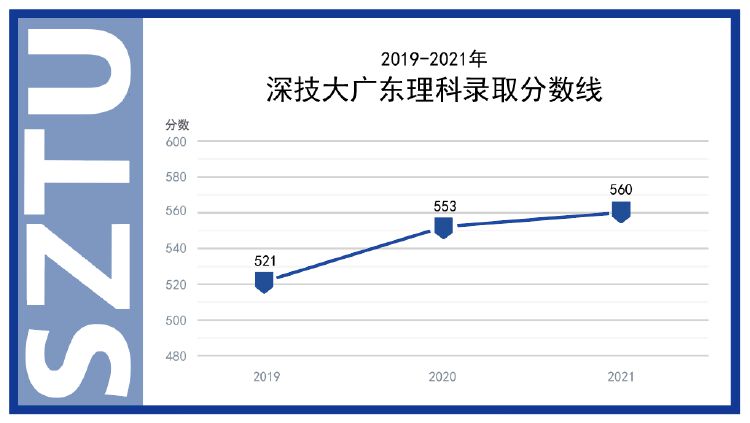 2021年,深技大步入了独立招生的第三年,面对招生人数大幅度增长的压力,面对2021年广东省首次实行3+1+2新高考模式的挑战,以及疫情的影响。深技大2021年理科投档线继续稳步提高,普通物理类投档线560分。其中,录取的最高分达到了605分。根据广东省教育考试院公布的《广东省2021年本科普通类(物理)投档情况》,按各高校最低专业组投档线,深技大广东省理科投档线排位再创新高!