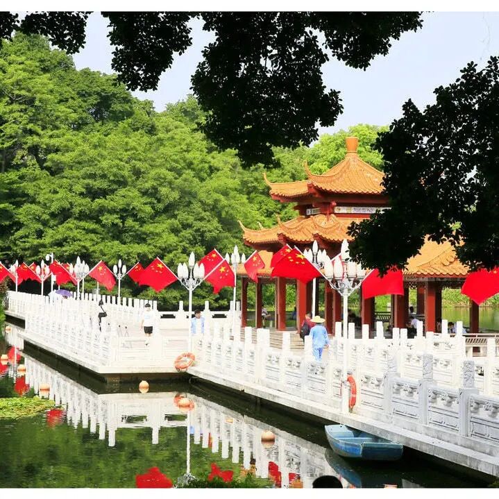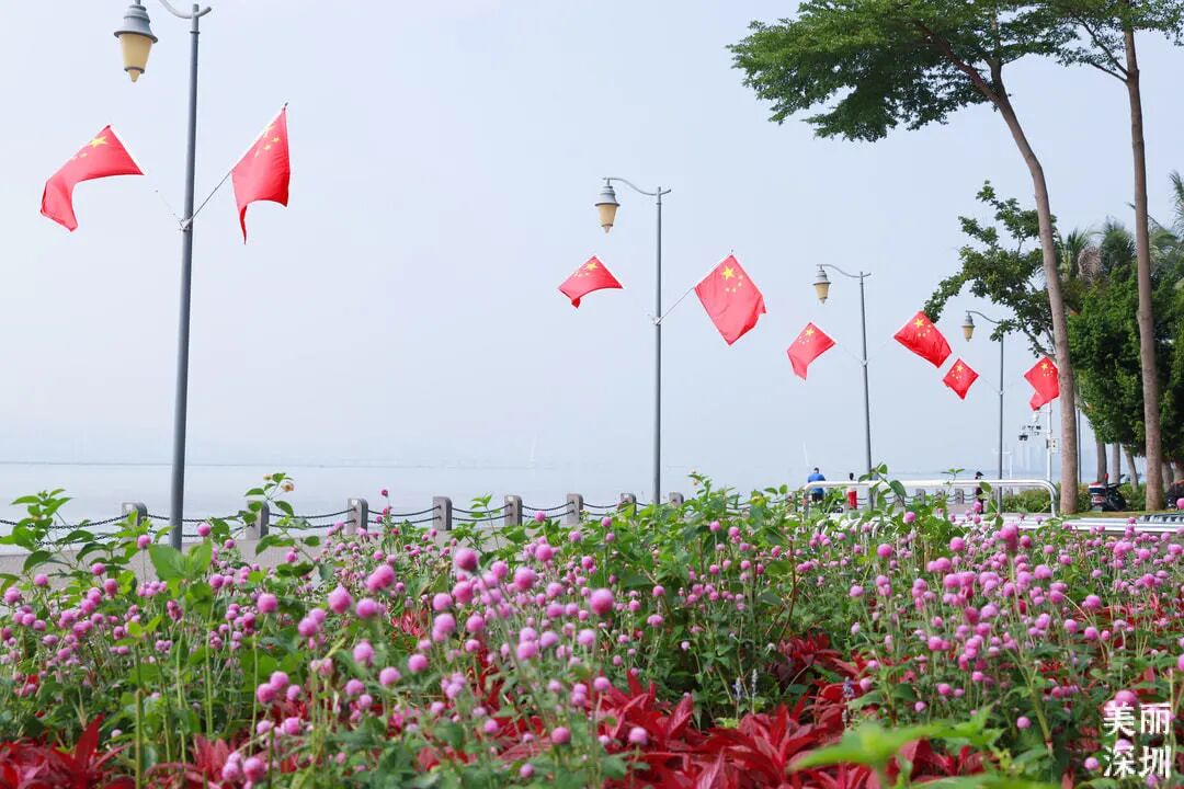 海上世界景区红旗飘扬,节日气氛浓厚。