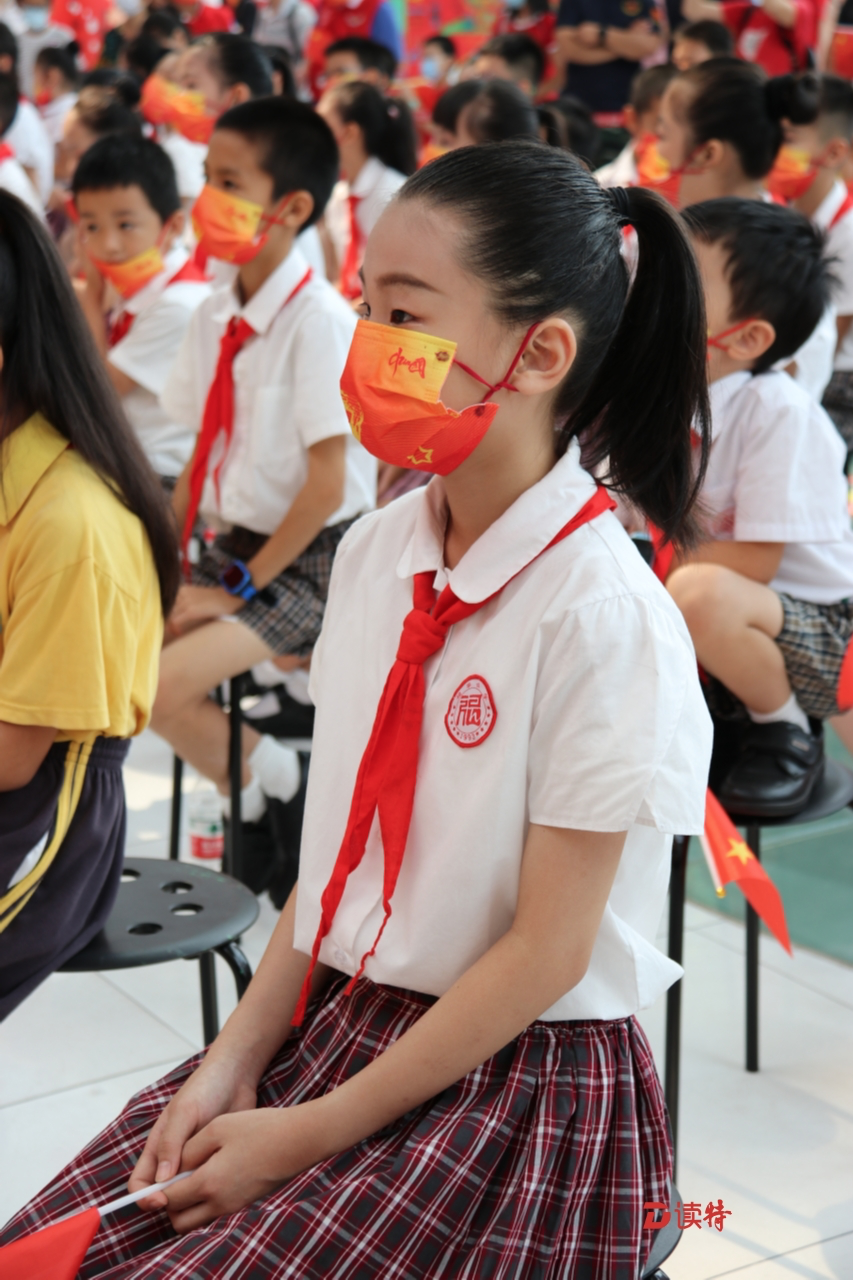参加升旗仪式的湾区青少年与现场市民共唱《我和我的祖国》《歌唱祖国》《中国少年先锋队队歌》等爱国歌曲,共同庆祝祖国母亲生日快乐!繁荣富强!