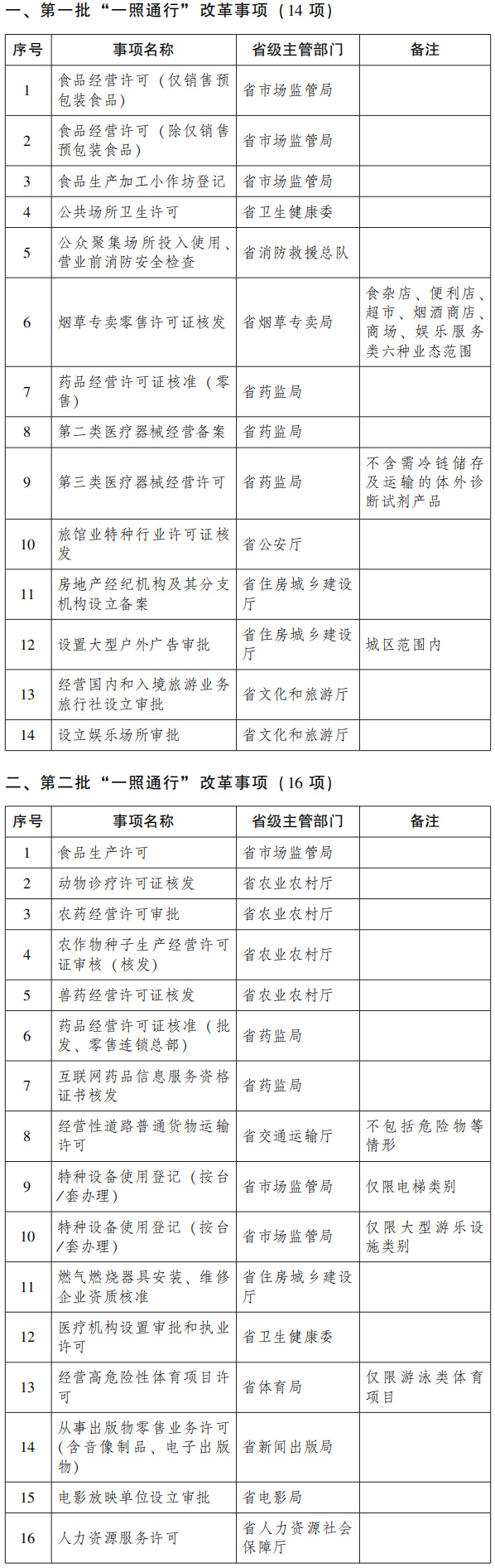 2021年5月底前在广州、深圳、珠海、佛山、东莞、中山等地试点开展“一照通行”改革,12月底前试点城市完成第一批14项改革事项,并在全省范围启动“一照通行”改革;2022年6月底前试点城市完成第二批16项改革事项。支持各地在此基础上先行先试,进一步拓展改革事项范围,将更多涉企审批服务事项纳入“一照通行”改革。到2023年在全省范围实现高频事项“一照通行”。探索与港澳地区联动互通,大力推进“湾区通办”。