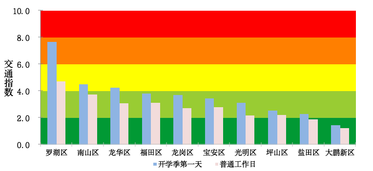 ▲开学第一天全市主要行政区早高峰道路交通运行指数