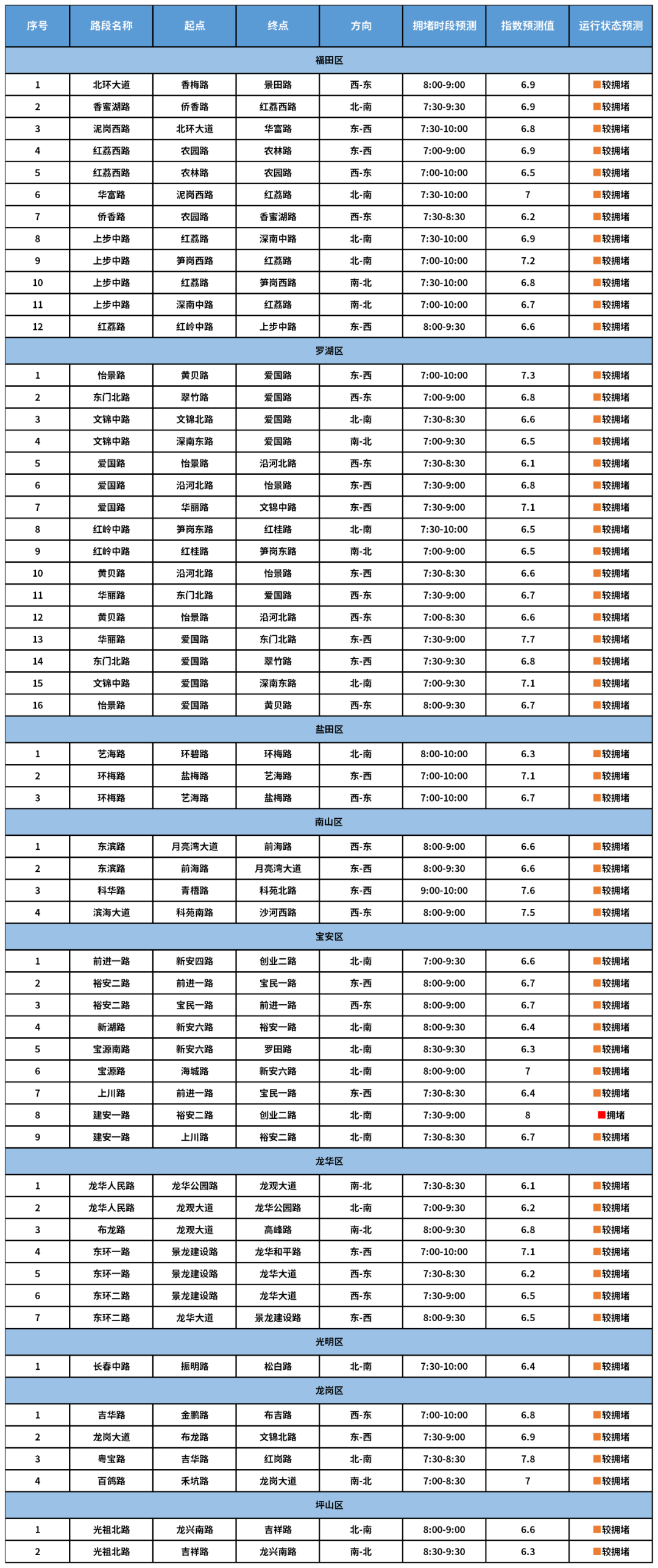 ◎怡景路(黄贝路-爱国路,西行)、上步中路(笋岗西路-红荔路,南行)、上步中路(深南中路-红荔路,北行)、红荔西路(农林路-农园路,东行)、吉华路(金鹏路-布吉路,东行)、东环一路(景龙建设路-龙华和平路,西行)、环梅路(盐梅路-艺海路,西行)、环梅路(艺海路-盐梅路,东行)等路段受开学影响较大;