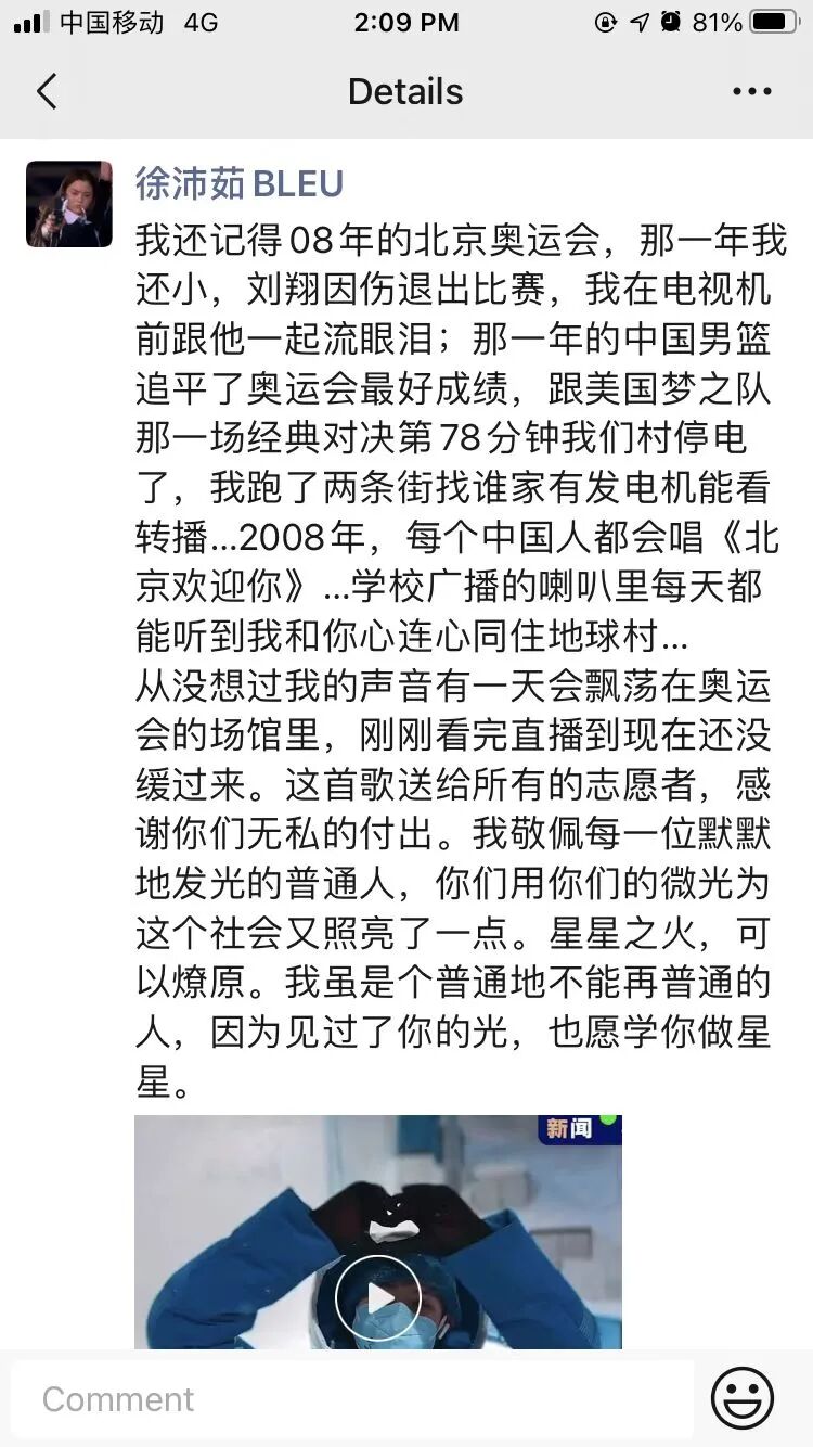 作为主唱,深圳女孩徐沛茹知道自己的歌被冬奥会选中后的第一反应竟是: