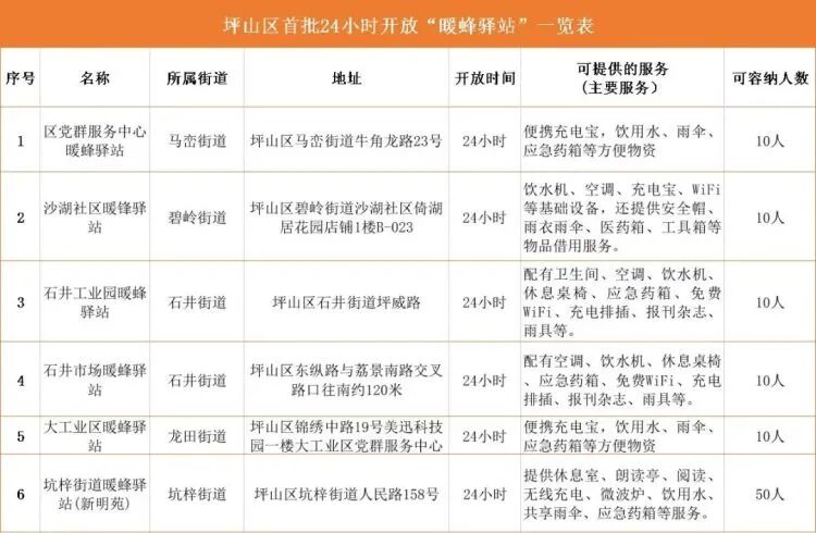疫情无情,人间有爱,为保障外卖小哥和快递小哥能够正常开展工作,从即日起至3月20日,坪山将在全区围合区域外,选择一批暖蜂驿站,实行24小时全天候开放,免费提供给有需要的外卖小哥和快递小哥歇脚休息。