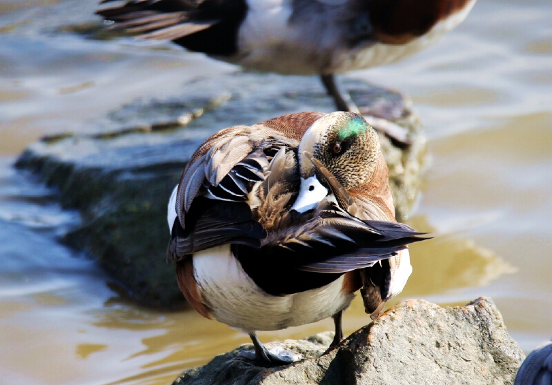 ▲在深圳湾越冬的绿眉鸭。(深圳晚报记者 李晶川 摄)