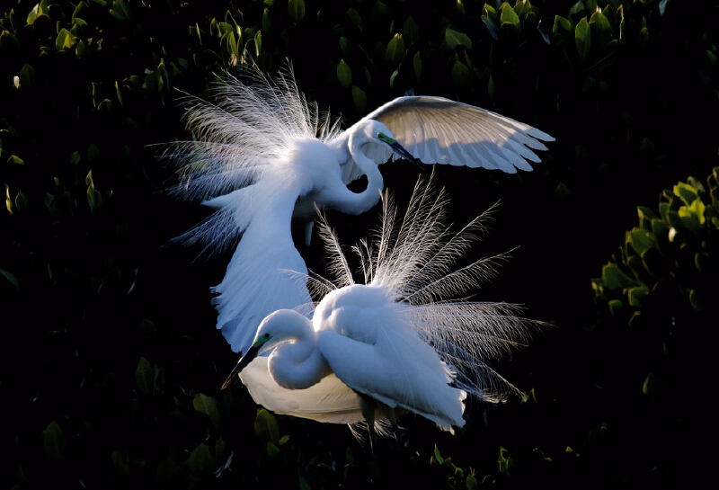▲繁殖季节,红树林中的大白鹭。(深圳晚报记者 李晶川 摄)