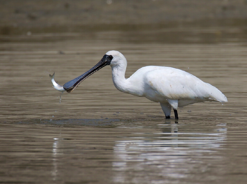 ▲在深圳湾捕食的黑脸琵鹭。(深圳晚报记者 李晶川 摄)